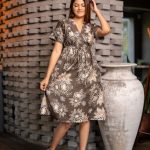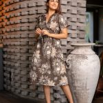 Foil print dress (Women / Dresses) comes in multiple sizes: UK 8 (Small), UK 10 (Medium), UK 12 (Large), UK 14 (XL), UK 16 (XXL), UK 18 (XXXL).